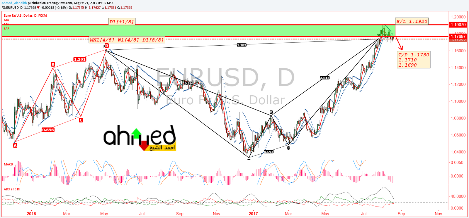 الاسبوع سابق هبط الزوج اكثر من 120 نقطة وذلك بسبب اليورو تحت ضغط الأعمال الإرهابية في إسبانيا، ومن بعدها ارتفع اليورو بسبب أن الدولار الأمريكي يتأثر بالنزاع في إدارة ترامب. ولم تؤكد الشائعات حول استقالة غاري دى كوهن المستشار الرئيسى للرئيس، الامر الذى ابطأ انخفاض العملة الامريكية.