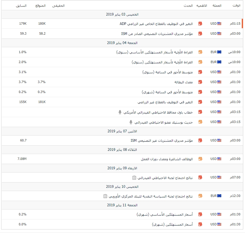 اهم البيانات لمنتظره هذا الاسبوع بتوقيت جرينتش