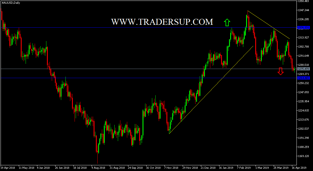 ونوهنا فى التحليلات الفنية السابقة بأنه على الرسم البيانى اليومى أدناه يبدو واضحا تشكيل الرأس والكتفين للمعدن الاصفر مما ينذر بضغوط بيعية جديدة. ومما ساهم فى خسائره قوة الدولار الامريكى على الرغم من تباطؤ النمو الاقتصادى الامريكى فى الربع الاخير من عام 2018 بأكثر من التوقعات.